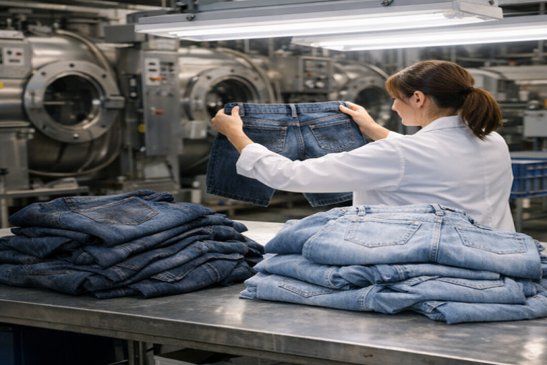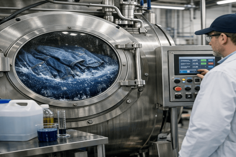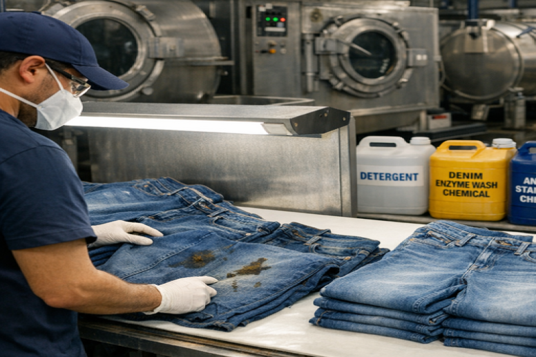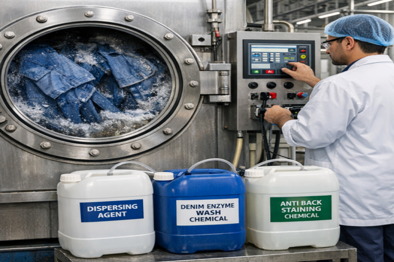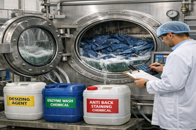 Proper chemical selection reduces denim washing defects and improves batch consistency.