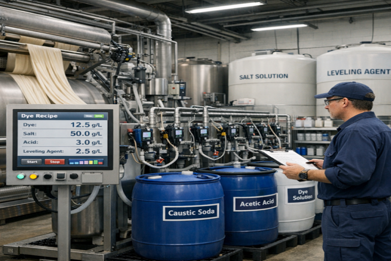 Standardized dosage charts, water testing protocols, and batch-wise chemical logs support reproducible dyeing outcomes in large-scale production.